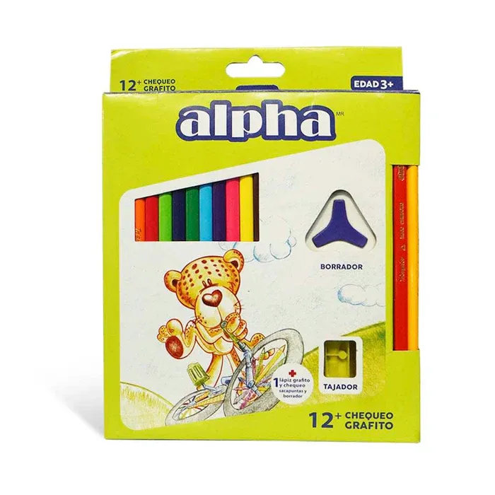 Alpha Color Largo x 12 + 1 Lapiz Grafito + 1 Borrador + 1 Tajador Con Deposito + Chequeo 58457