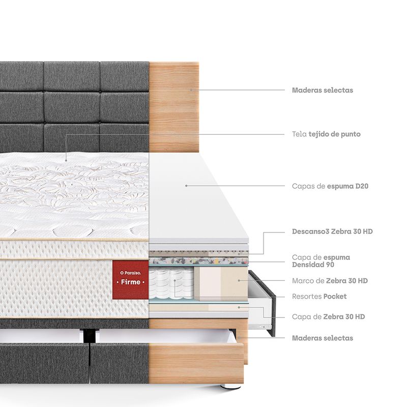 Paraiso Dormitorio Royal Prince con cajones 2 Plazas