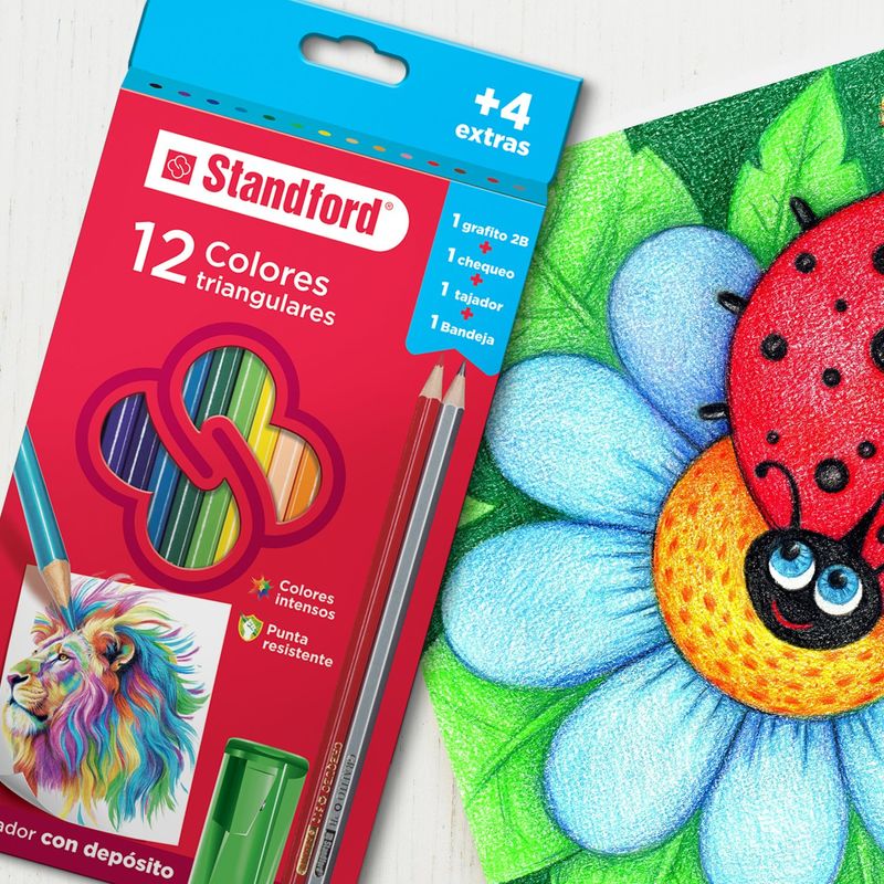 DUROSESCOLAR DUROSLIBRERIAUTILES *LIBRERIACOLORESStandford Colores Triang Setx12 Larg +Band+2Lap+Taj 035387