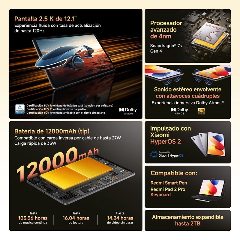 TecnologíaComputadorasTabletsXiaomi Tablet Redmi Pad 2 Pro Silver 12.