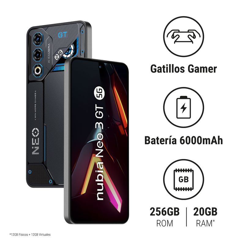 ZTE Celular Nubia Neo 3 GT 5G Gris 12+256Gb + Nubia Gamepad
